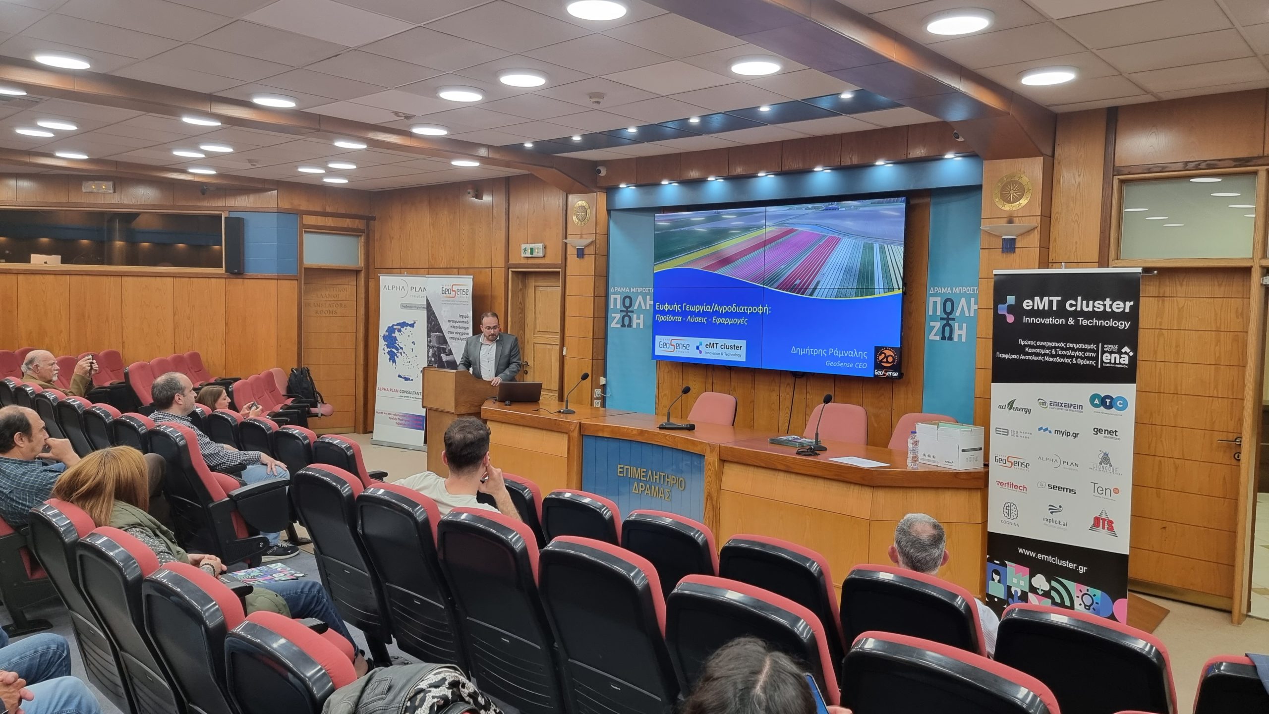 Ο Διευθύνων Σύμβουλος της εταιρείας Geosense, Δημήτρης Ράμναλης, εστίασε στη χρήση των drones στην αγροτική παραγωγή περιγράφοντας λύσεις που συμβάλλουν στην έγκαιρη διάγνωση ασθενειών και άλλων θεμάτων της παραγωγής.