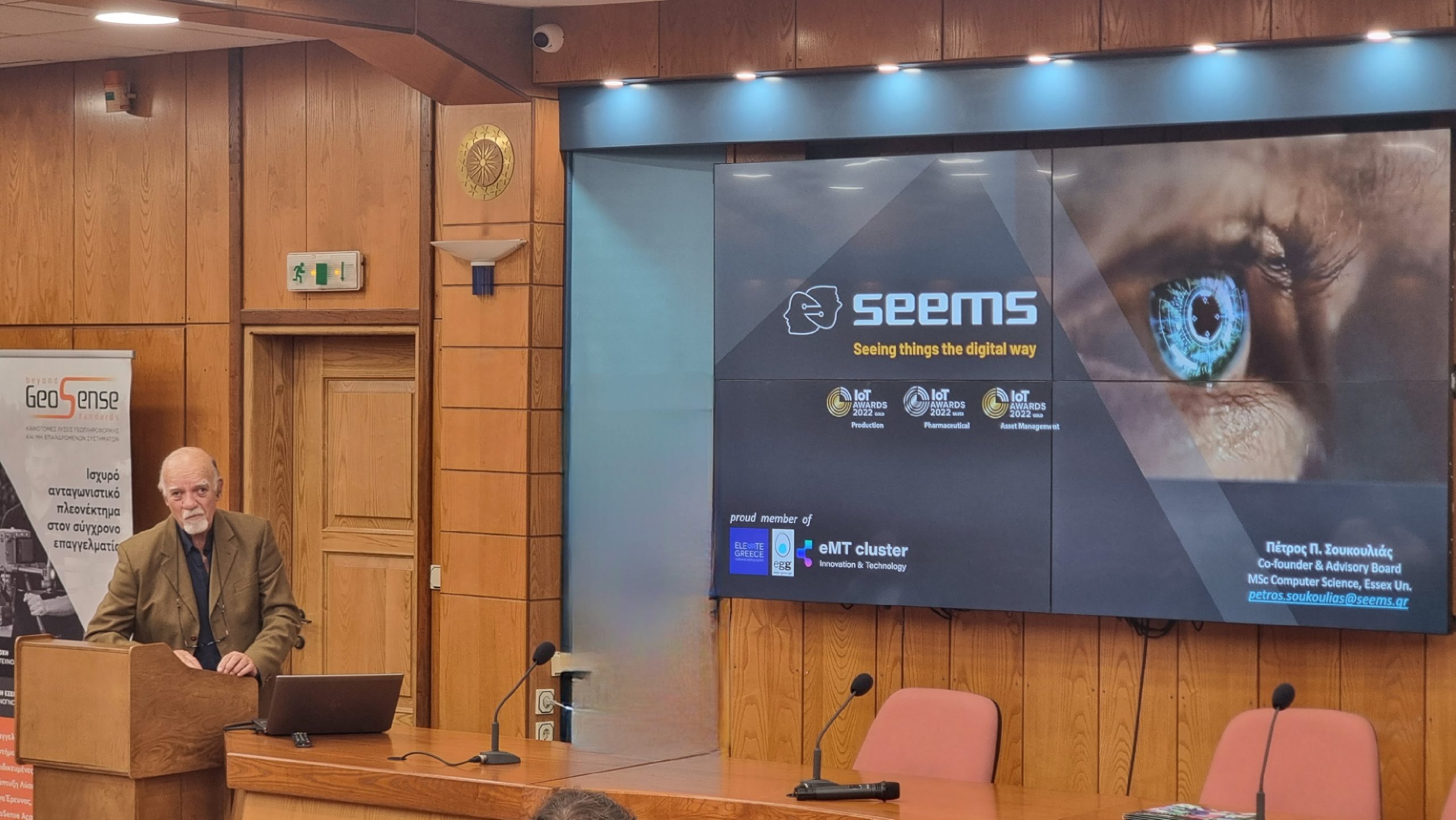 Ο Αντιπρόεδρος της εταιρείας Seems, Πέτρος Σουκουλιάς, παρουσίασε λύσεις που αφορούν σε κάθε επιχείρηση που διαθέτει μηχανολογικό εξοπλισμό και θα μπορούσε να εφαρμόσει προηγμένες τεχνολογίες IoT, μηχανική μάθηση, ολοκληρωμένη αποτύπωση διαγνωστικών εργαλείων, αυτοματισμών και άλλων που καταλήγουν σε αρτιότερη λειτουργία της επιχείρησης, σημαντική μείωση κόστους από διάφορα σημεία και ταχύτητα απόκρισης.